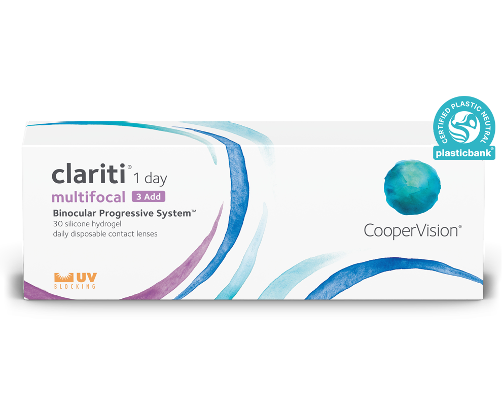 - clariti® 1 day multifocal są neutralne plastikowo. CooperVision kompensuje odpady z tworzyw sztucznych za każde sprzedane i dystrybuowane opakowanie soczewek kontaktowych clariti® 1 day multifocal.‡1